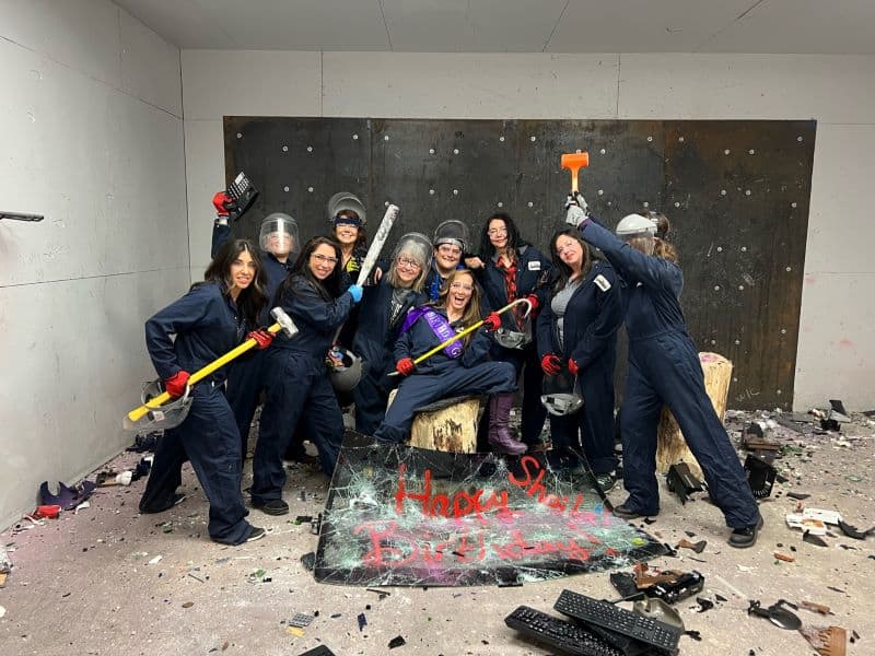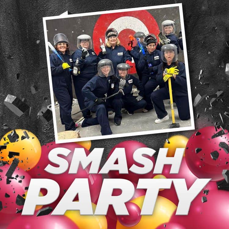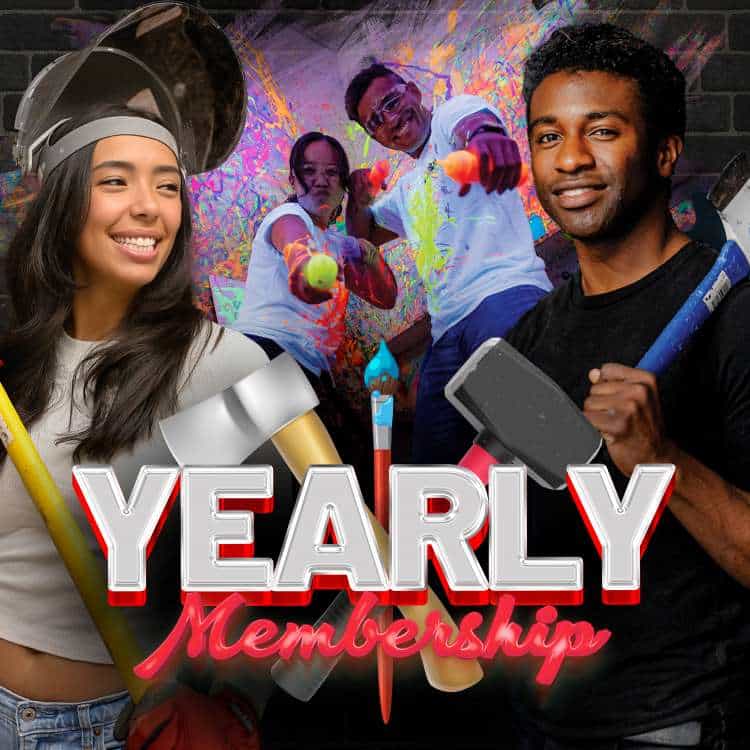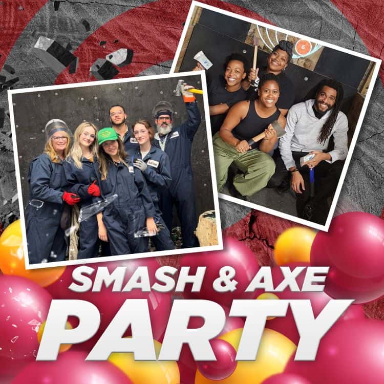 iSMASH rooms make for unforgettable birthdays: 100% mess-free and 100% fun. Have a splatter paint party, or a lumberjack competition with your friends in our axe throwing area, or blow off the steam and smash some things in our rage rooms. Our party room can host your gathering and also doubles as a giant rage room where everybody can participate in the smashing. We also offer the option to book multiple rooms, activities, or even the entire facility. Get in touch with us for additional info or to book your birthday party today.